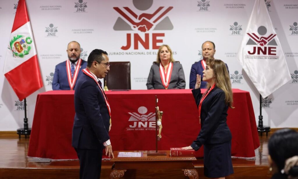 En ceremonia realizada esta mañana en la sede institucional de Jesús María Órgano temporal de primera instancia se instaló e inició funciones para la Consulta Popular de Revocatoria del próximo 8 de junio El presidente del Jurado Nacional Elecciones (JNE), Roberto Burneo Bermejo, tomó juramento a la jueza superior Rocío del Pilar Ruiz Arrieta, quien […]