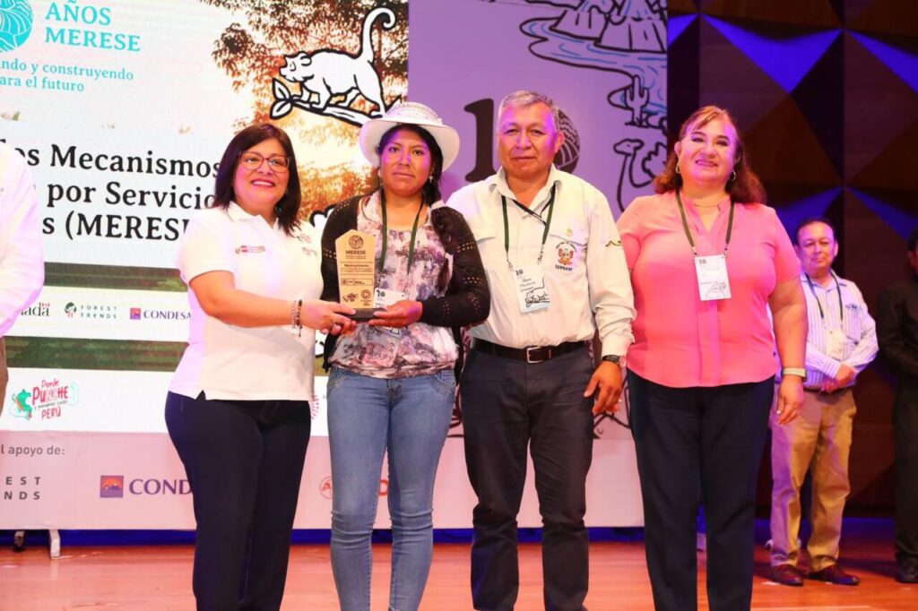 La viceministra Soto entregó trofeos de reconocimiento a 9 iniciativas MERESE y 2 plataformas de buena gobernanza registradas a nivel nacional, en mérito al esfuerzo conjunto de comunidades y organizaciones para fortalecer la gestión de los recursos naturales y promover el bienestar social.