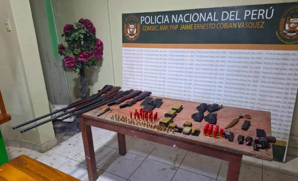 Durante el registro del inmueble, también se identificó a Marino Sánchez Alarcón (38). En el interior de la vivienda se halló un significativo arsenal que incluía cuatro escopetas calibre 16, una pistola marca Taurus calibre 6.35 mm, así como una considerable cantidad de municiones de diversos calibres, accesorios para armas, cinco portas pistolas, implementos de limpieza y la suma de veintiocho mil soles (S/ 28,000.00) en efectivo.