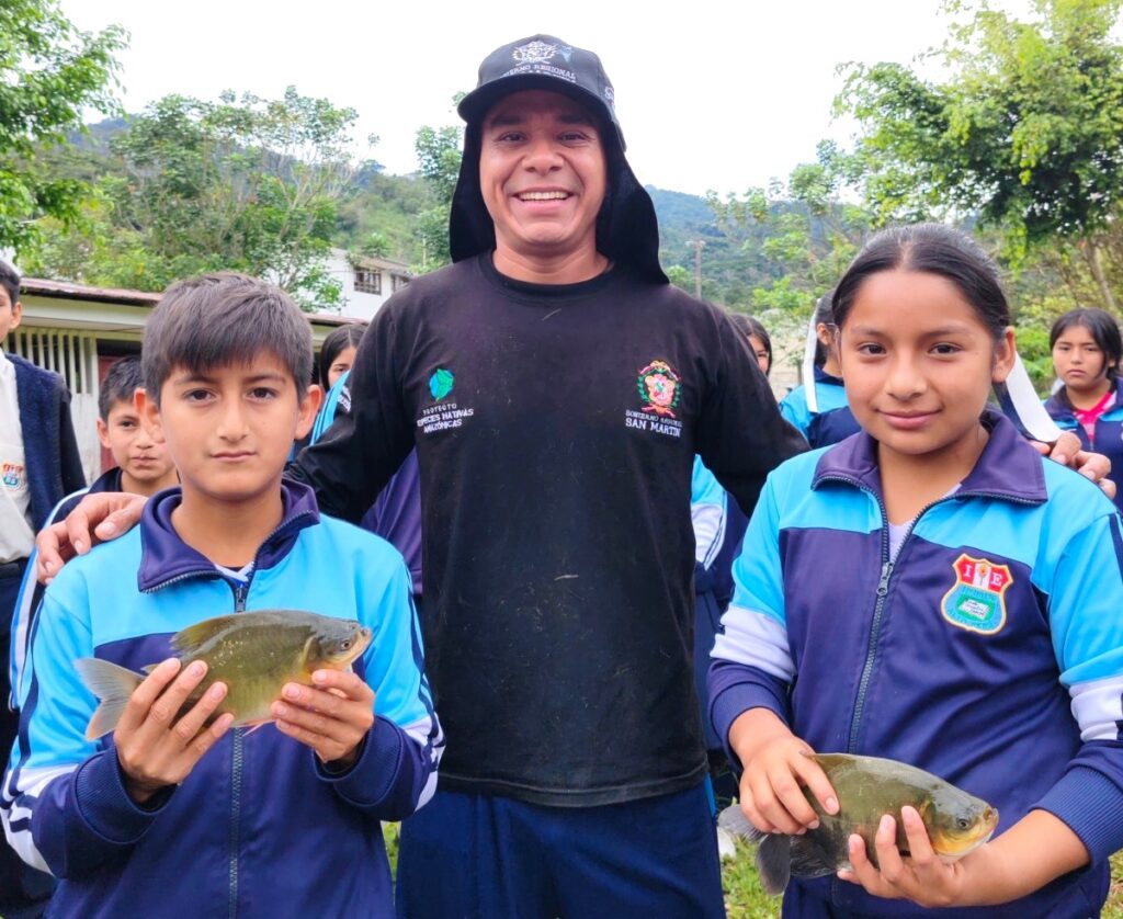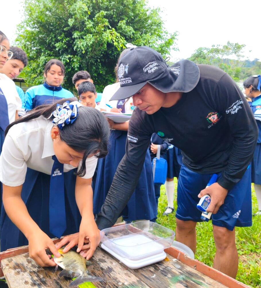 Estudiantes de Soritor logran su primera cosecha de gamitana y fortalecen formación técnica